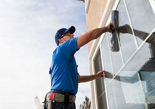 3. Cleaning: Water-fed poles gently scrub glass surfaces.